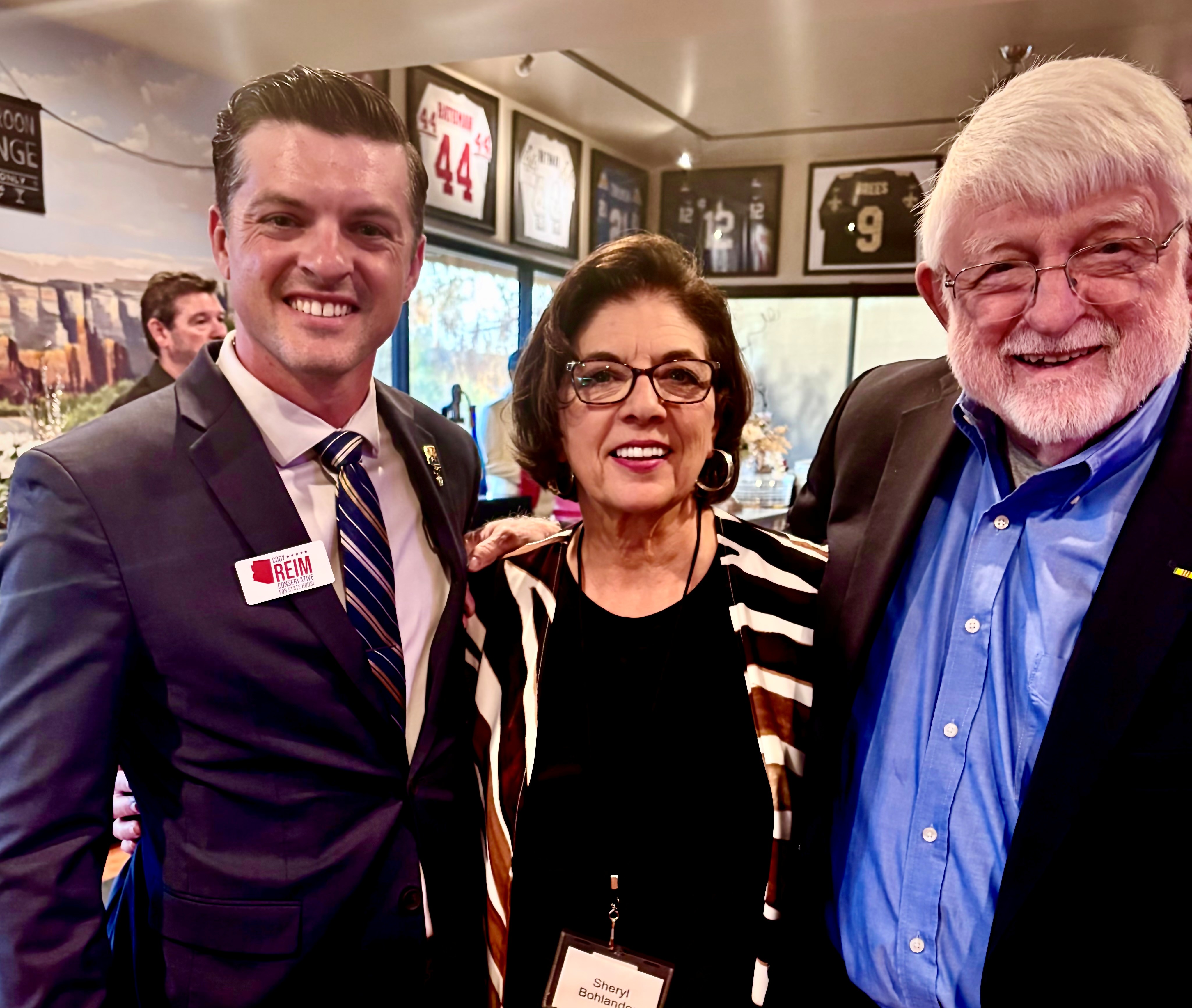 March: Cody Reim, who is running for the AZ House to represent LD3, Politics Uncorked AZ Chair Sheryl Bohlander, Former Scottsdale City Councilman Bob Littlefield